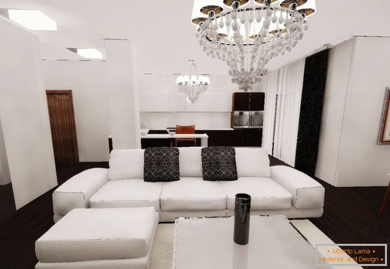 - stropy zo sádrokartónu, ktoré možno vidieť na fotografii, sú z hľadiska dizajnu veľmi výhodné: môžu byť natreté, zdobené nosením a LED osvetlením;